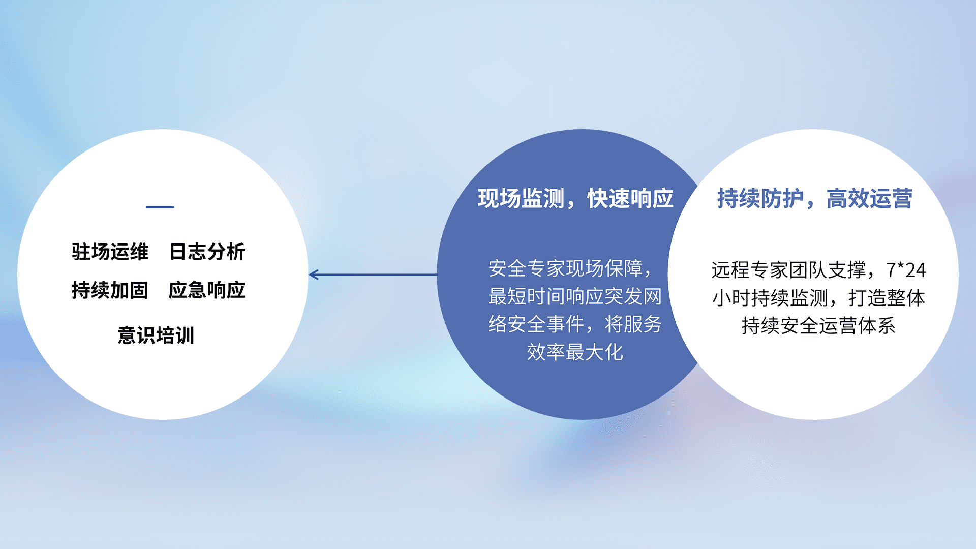 针对客户行业特性,,提供专属的一站式安全管理服务,,,,帮助客户全面感知网络空间威胁,,,通过安全专家的线上、、线下防护支持,,,,实现风险闭环,,,,将安全保障常态化,,,,为客户打造常态化安全运维运营服务。。。。